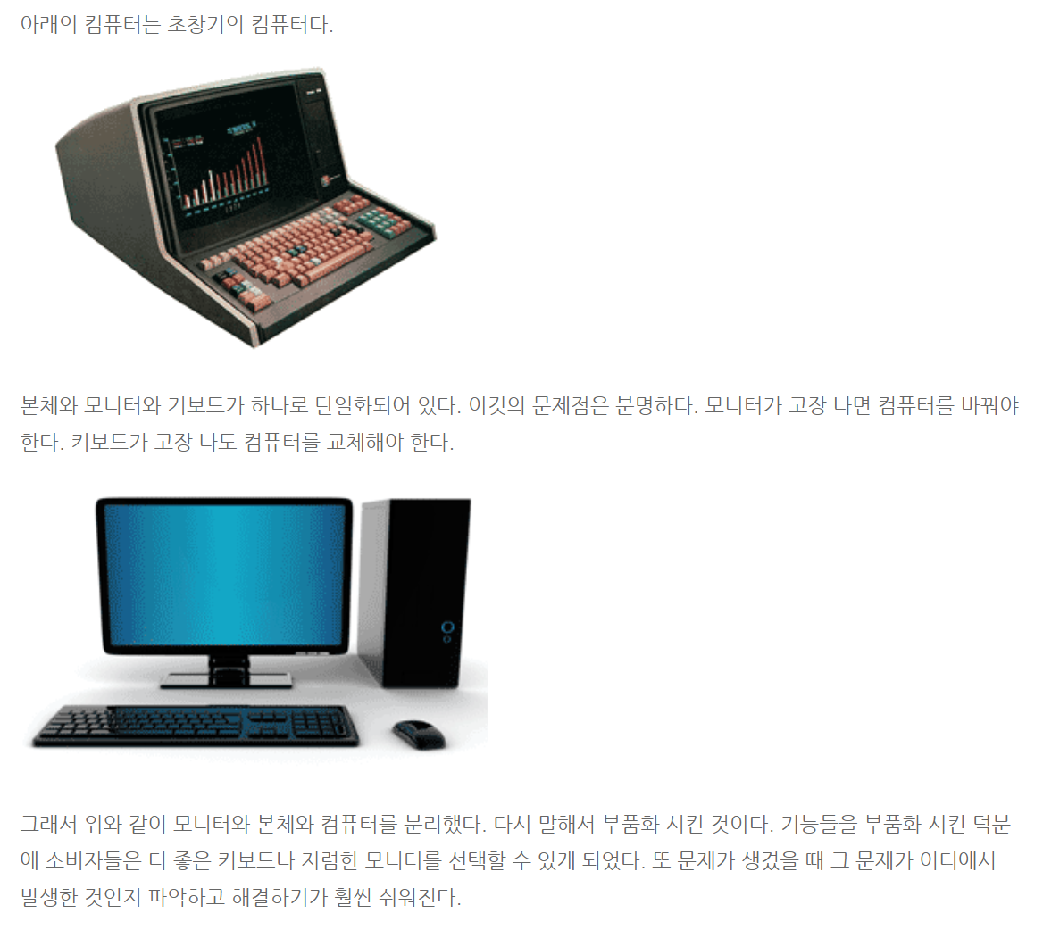- 잘 만들어진 부품이라면 부품과 부품을 서로 교환 할 수 있어야 한다.