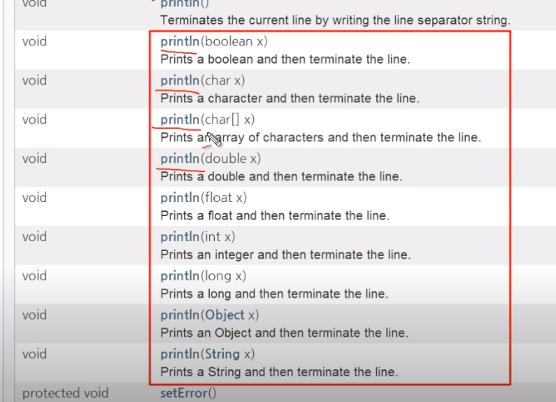 - 문법적으로 봤을 때 println은 메소드가 틀림없다. 그런데 메소드 앞에 Sytem.out이 있다.