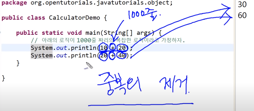 - 객체를 만들어 놓으면 다른 곳에서 재활용할 수 있게 된다.